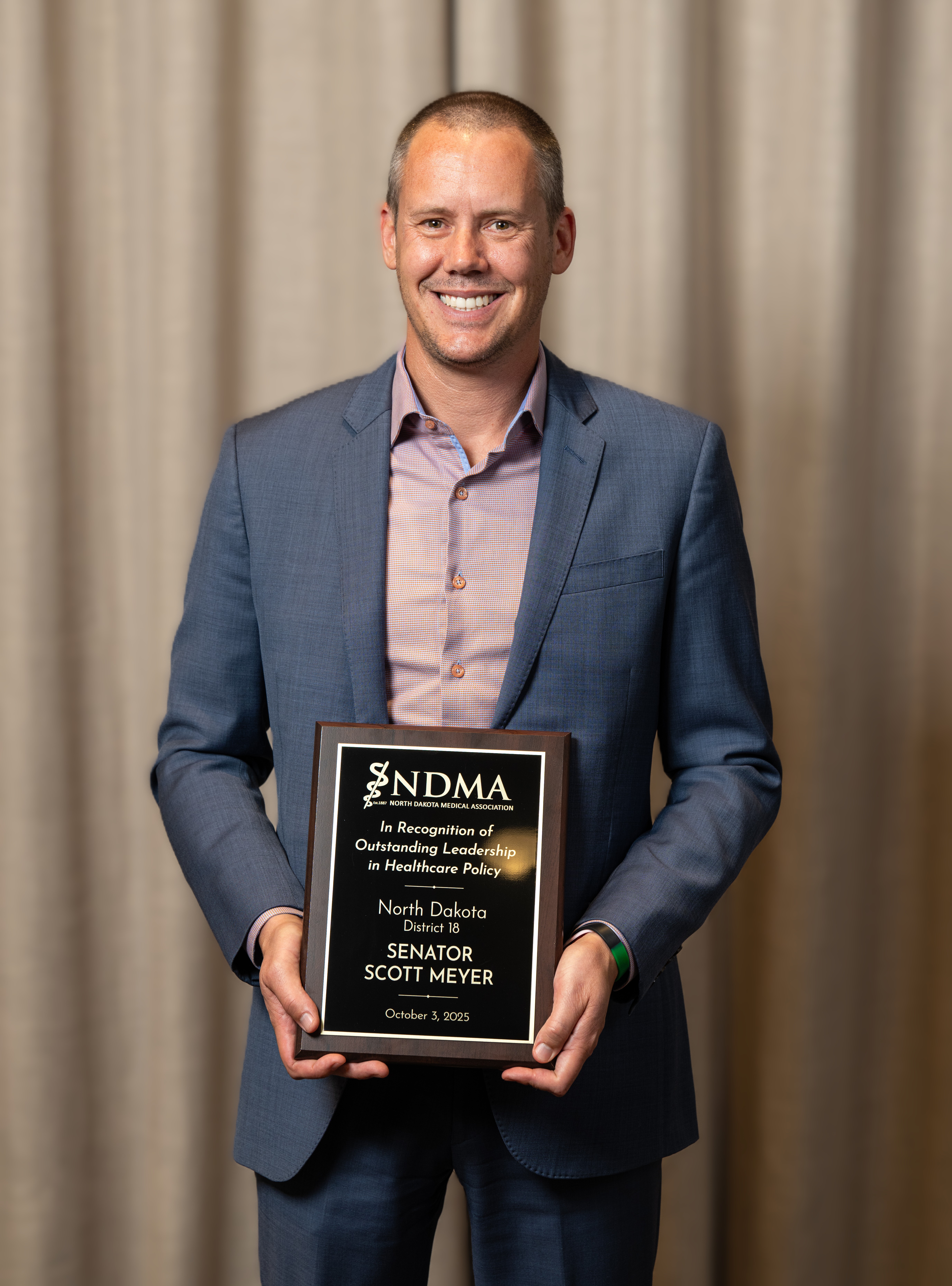 A senator from Grand Forks since 2017, Senator Scott Meyer is a strong advocate for healthcare and was the primary sponsor of two of NDMA's priority bills through the 2025 session: Prior Authorization Reform and Maternal Health. Senator Meyer played a crucial role in getting the job done. His approach to holding the line in negotiations resulted in the successful passage of both bills with fair outcomes for all parties: physicians, patients, healthcare systems, and insurers. When it comes to treating patients, Senator Meyer respects that physicians know what is best for patients. His commitment to going the distance by showing up at hearings, providing compelling testimony, and showing extreme passion is a rare find. He is an inspiration to healthcare.